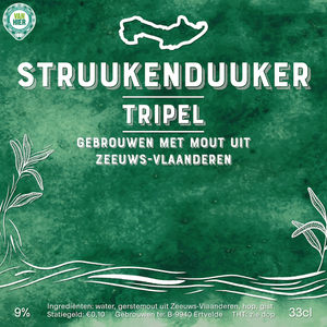 De Struukenduuker is een goudkleurige koolzuur rijke tripel met een grove inzakkende schuimkraag. In de smaak is dit biertje fruitig en er komen hinten van mout en gist naar boven.